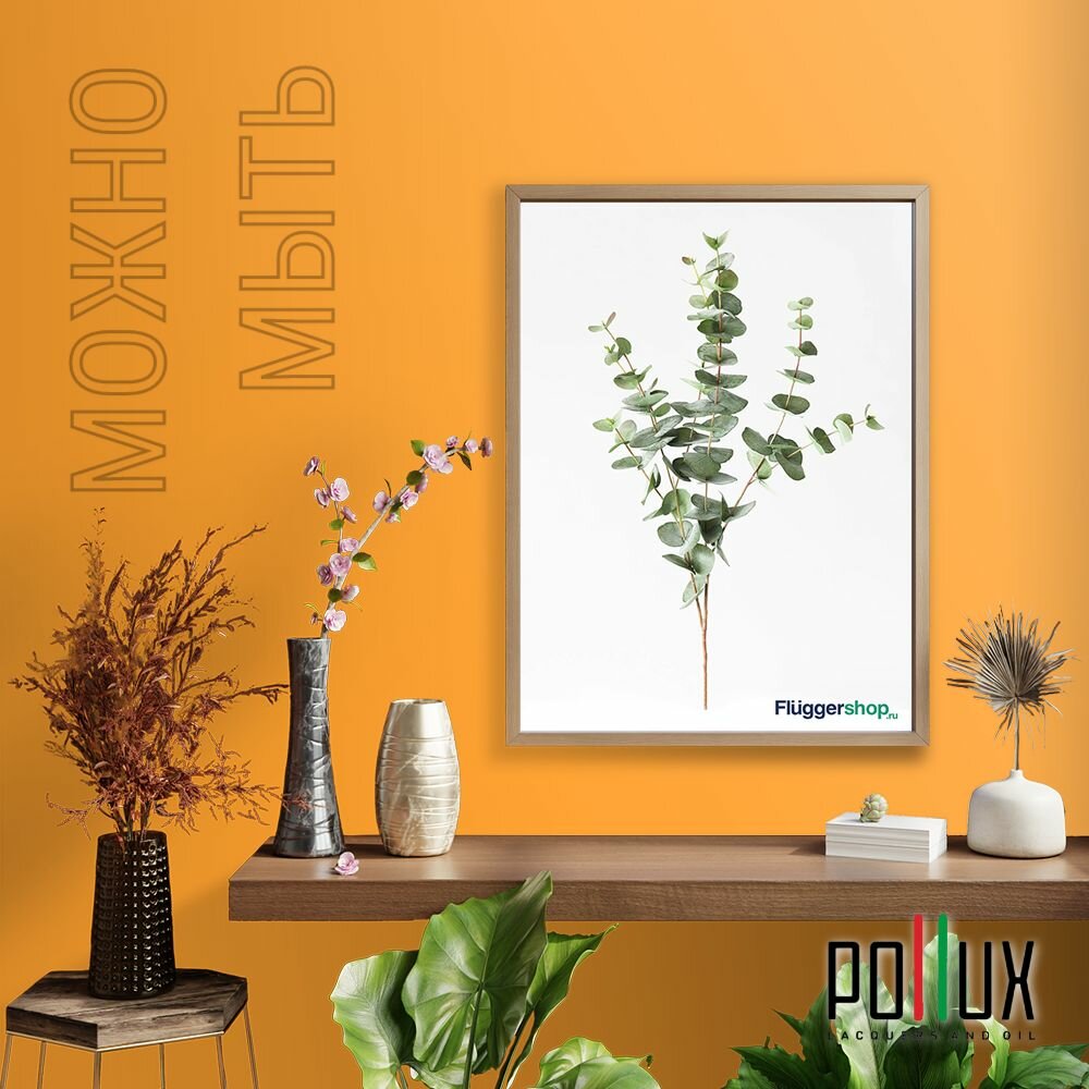 Краска моющаяся интерьерная для стен и потолков, Pollux INTERIOR без запаха, быстросохнущая, акриловая, матовое покрытие, цвет NCS S 3050-Y30R, 1л.