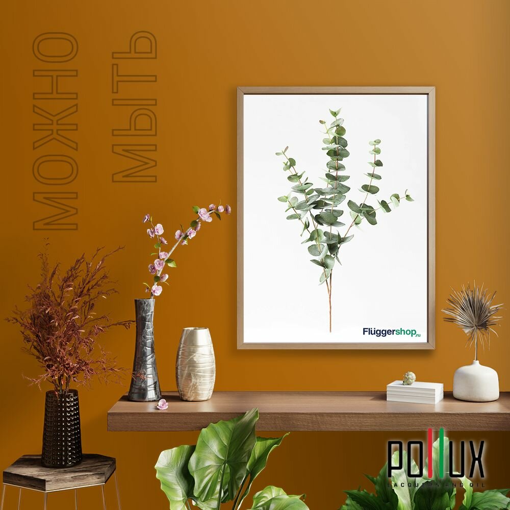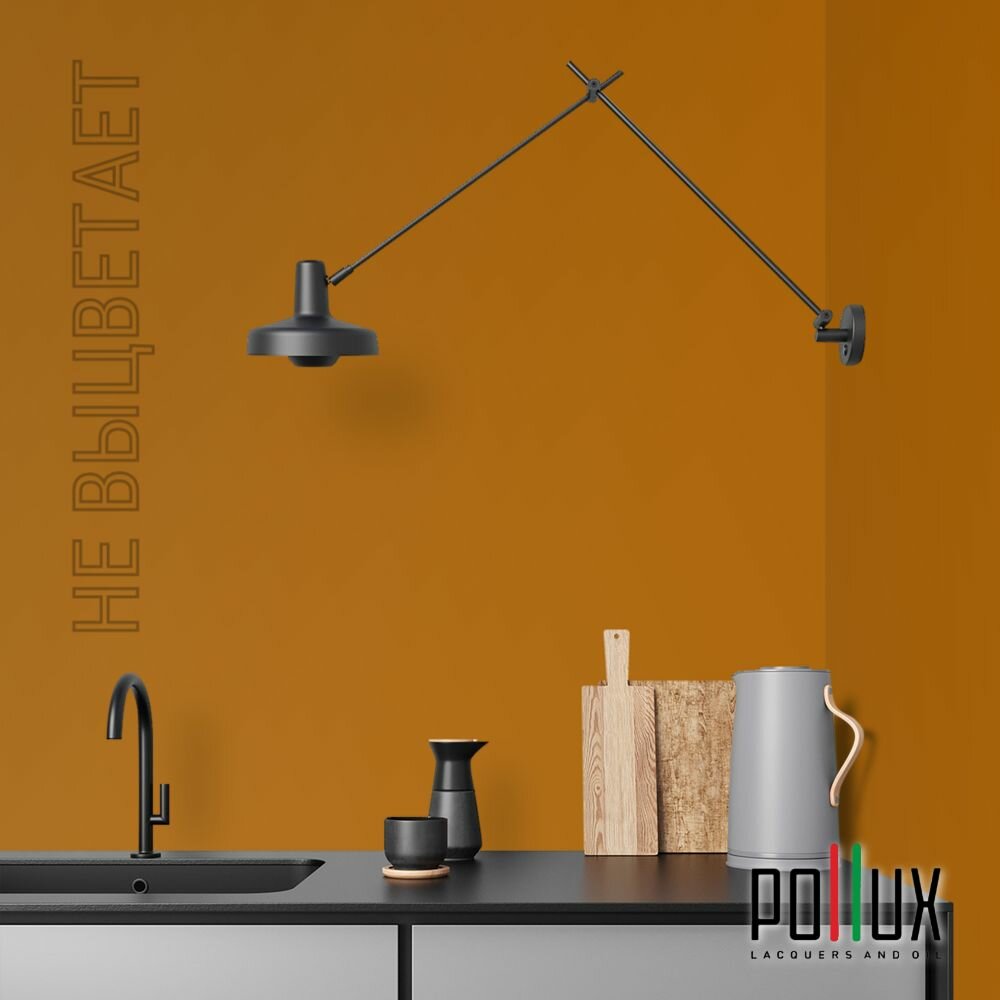 Краска моющаяся интерьерная для стен и потолков, Pollux INTERIOR без запаха, быстросохнущая, акриловая, матовое покрытие, цвет NCS S 4050-Y30R, 1л.