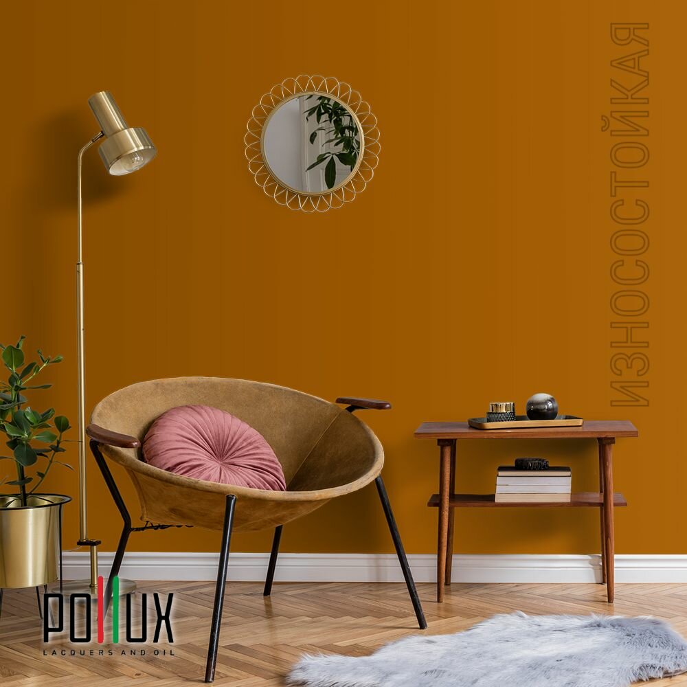 Краска моющаяся интерьерная для стен и потолков, Pollux INTERIOR без запаха, быстросохнущая, акриловая, матовое покрытие, цвет NCS S 0585-Y30R, 1л.