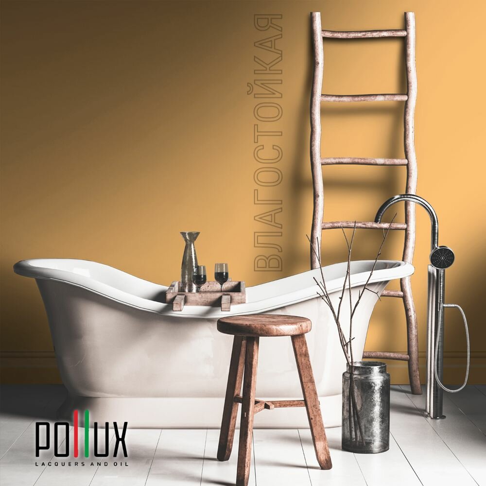 Краска моющаяся интерьерная для стен и потолков, Pollux INTERIOR без запаха, быстросохнущая, акриловая, матовое покрытие, цвет NCS S 2570-Y30R, 1л.