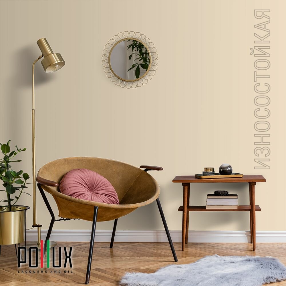 Краска моющаяся интерьерная для стен и потолков, Pollux INTERIOR без запаха, быстросохнущая, акриловая, матовое покрытие, цвет NCS S 0585-Y30R, 1л.