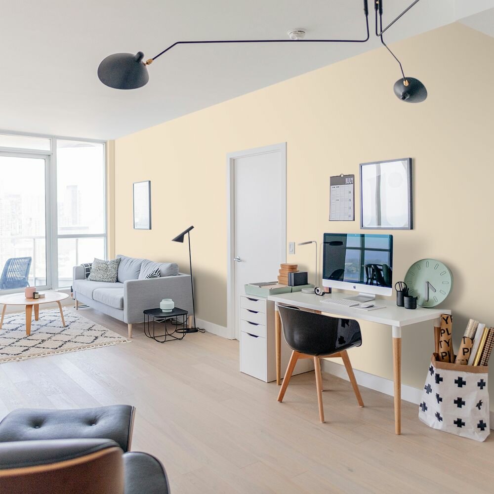 Краска моющаяся интерьерная для стен и потолков, Pollux INTERIOR без запаха, быстросохнущая, акриловая, матовое покрытие, цвет NCS S 0530-Y30R, 1л.
