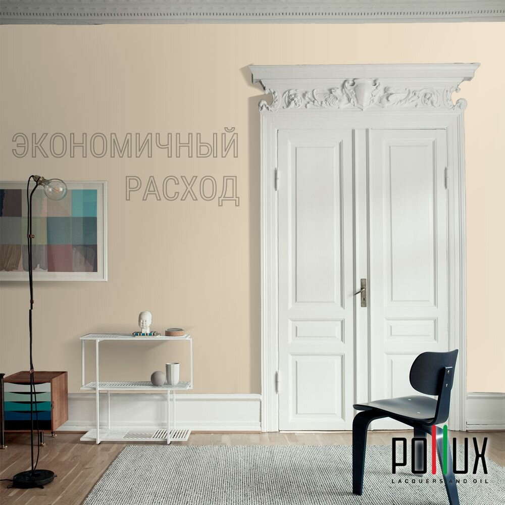 Краска моющаяся интерьерная для стен и потолков, Pollux INTERIOR без запаха, быстросохнущая, акриловая, матовое покрытие, цвет NCS S 1015-Y30R, 1л.