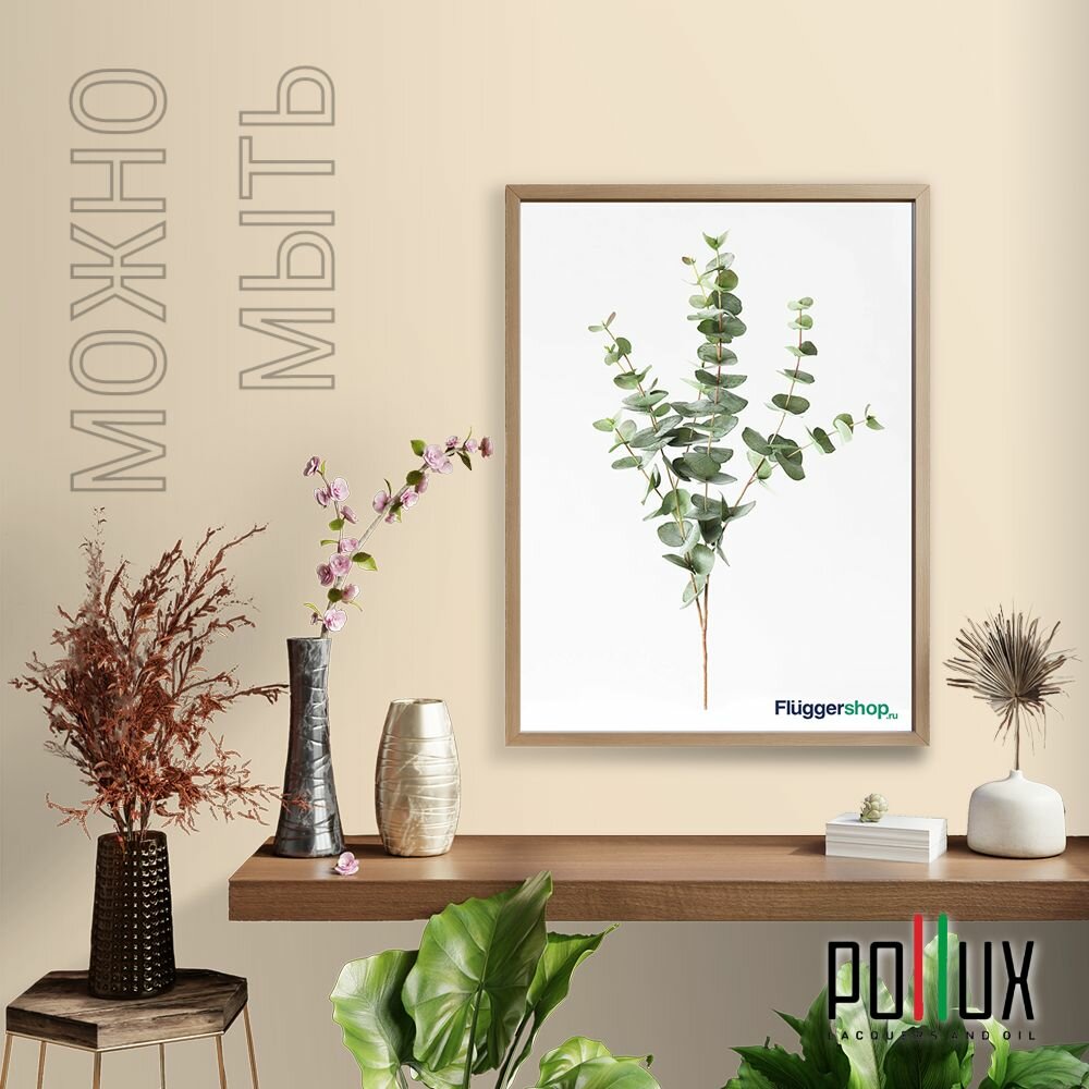 Краска моющаяся интерьерная для стен и потолков, Pollux INTERIOR без запаха, быстросохнущая, акриловая, матовое покрытие, цвет NCS S 8010-Y30R, 1л.