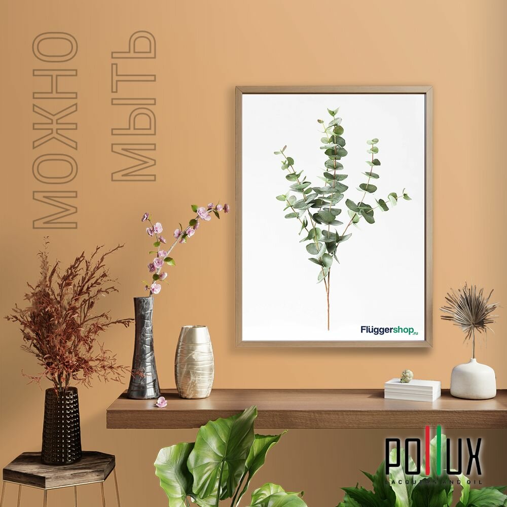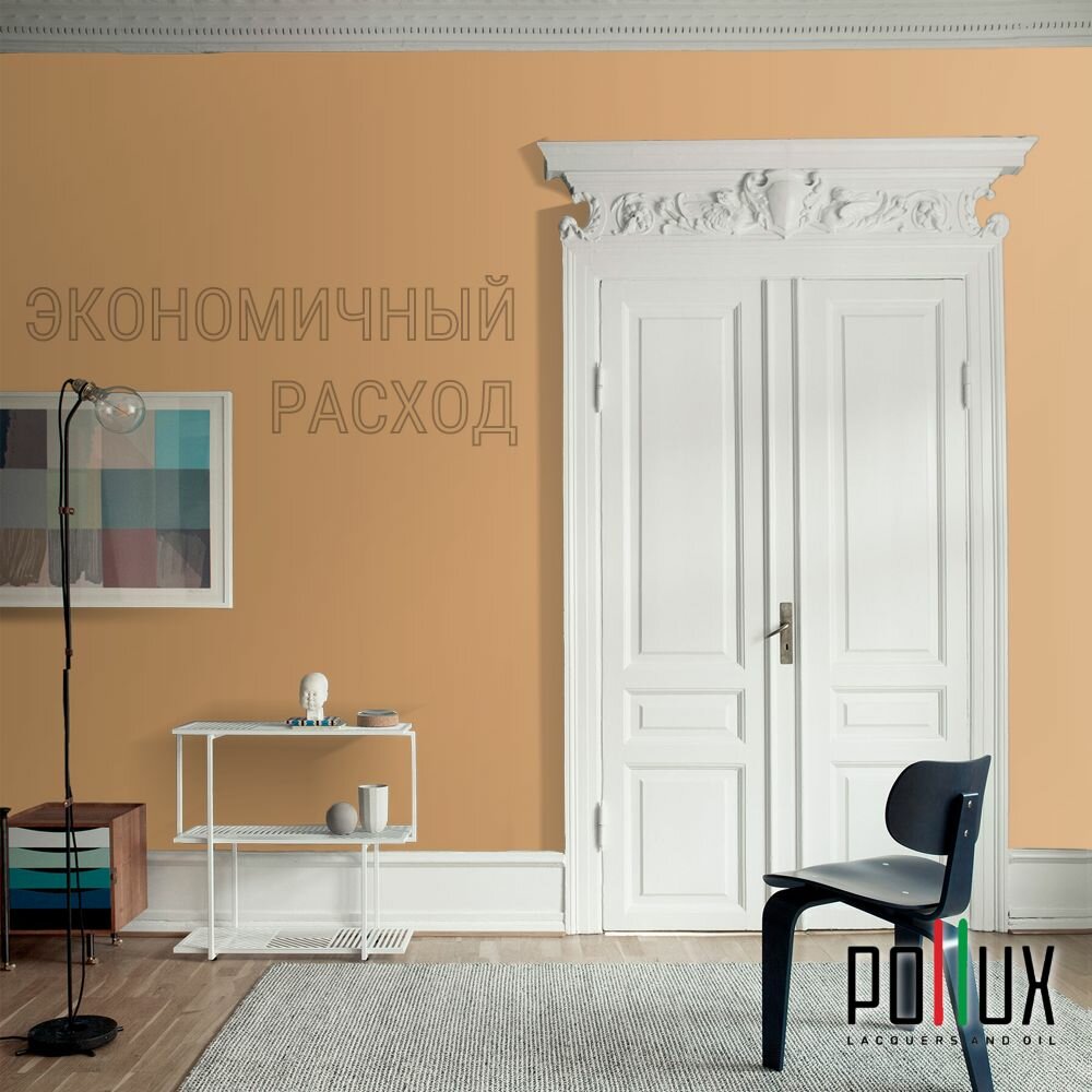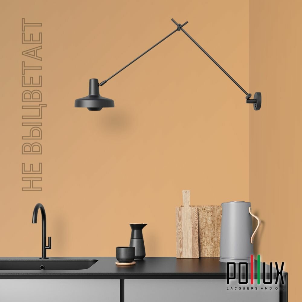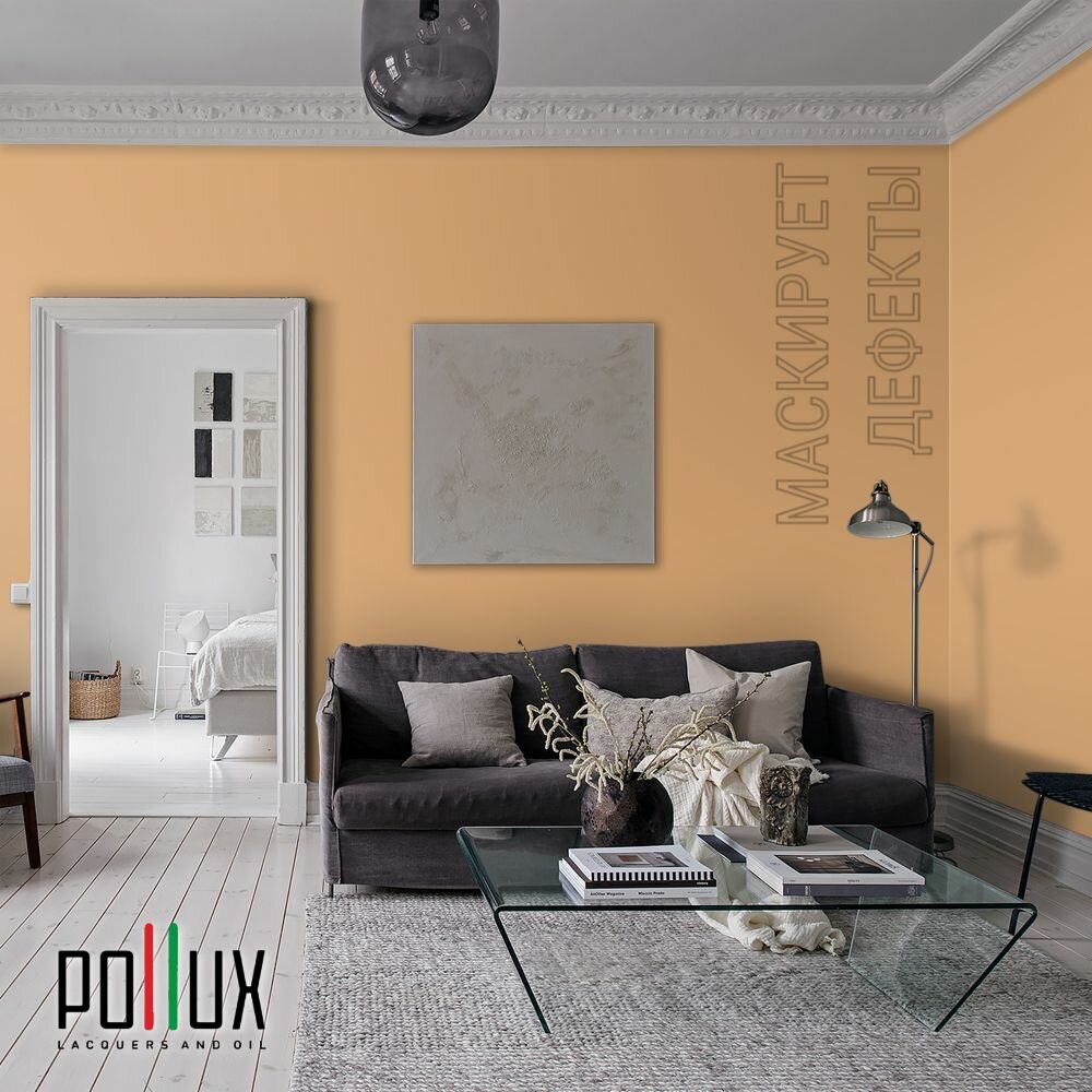 Краска моющаяся интерьерная для стен и потолков, Pollux INTERIOR без запаха, быстросохнущая, акриловая, матовое покрытие, цвет NCS S 0585-Y30R, 1л.