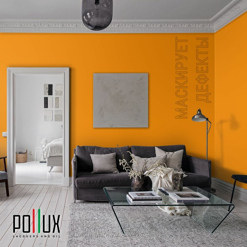 Краска моющаяся интерьерная для стен и потолков, Pollux INTERIOR без запаха, быстросохнущая, акриловая, матовое покрытие, цвет NCS S 1060-Y30R, 1л.