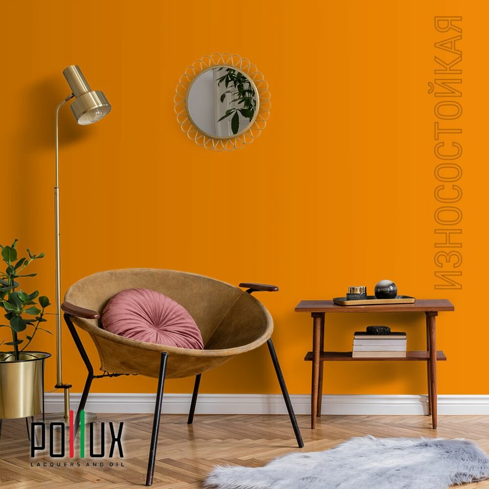 Краска моющаяся интерьерная для стен и потолков, Pollux INTERIOR без запаха, быстросохнущая, акриловая, матовое покрытие, цвет NCS S 0585-Y30R, 1л.