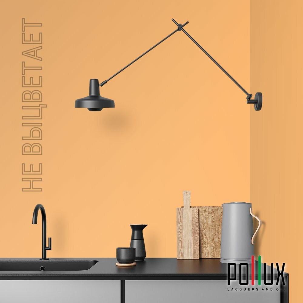 Краска моющаяся интерьерная для стен и потолков, Pollux INTERIOR без запаха, быстросохнущая, акриловая, матовое покрытие, цвет NCS S 0585-Y30R, 1л.