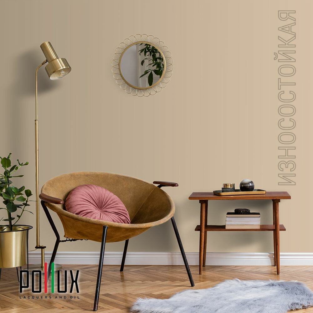 Краска моющаяся интерьерная для стен и потолков, Pollux INTERIOR без запаха, быстросохнущая, акриловая, матовое покрытие, цвет NCS S 2570-Y30R, 1л.