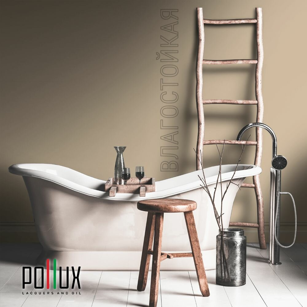 Краска моющаяся интерьерная для стен и потолков, Pollux INTERIOR без запаха, быстросохнущая, акриловая, матовое покрытие, цвет NCS S 7010-Y30R, 1л.