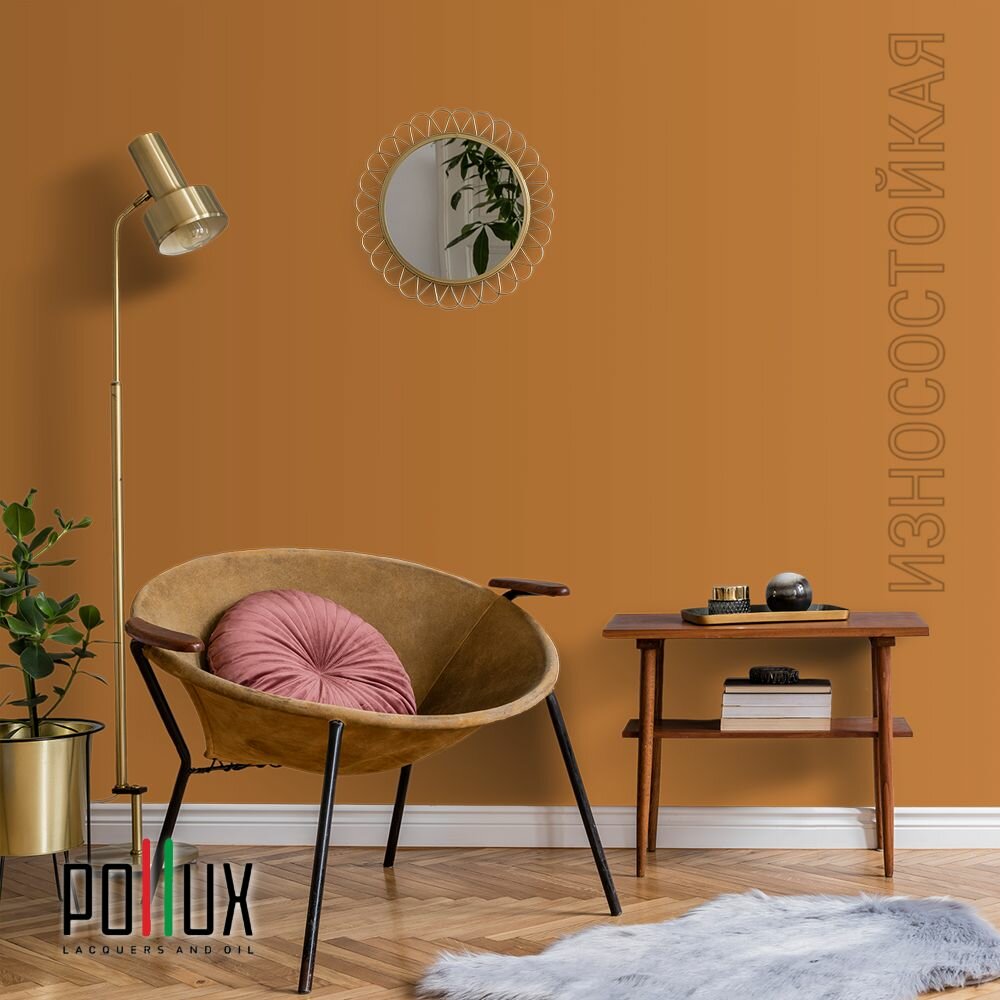 Краска моющаяся интерьерная для стен и потолков, Pollux INTERIOR без запаха, быстросохнущая, акриловая, матовое покрытие, цвет NCS S 0585-Y30R, 1л.