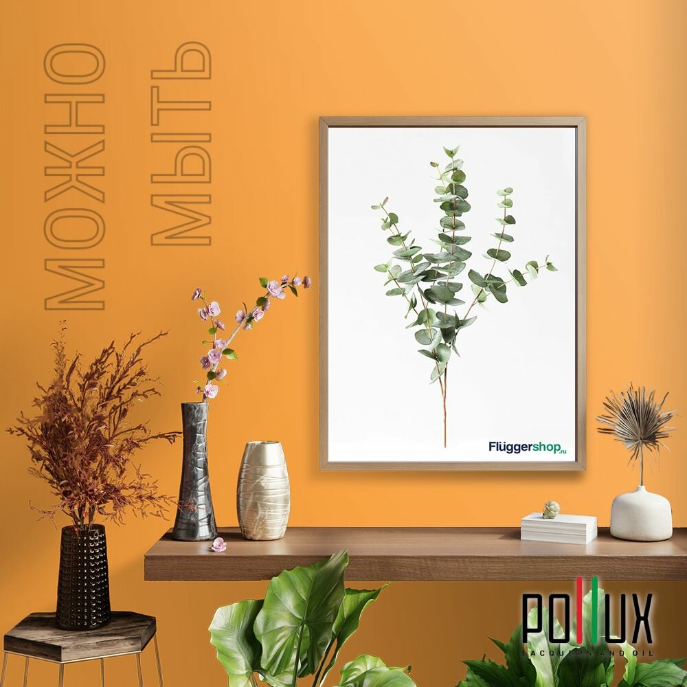 Краска моющаяся интерьерная для стен и потолков, Pollux INTERIOR без запаха, быстросохнущая, акриловая, матовое покрытие, цвет NCS S 3060-Y30R, 1л.