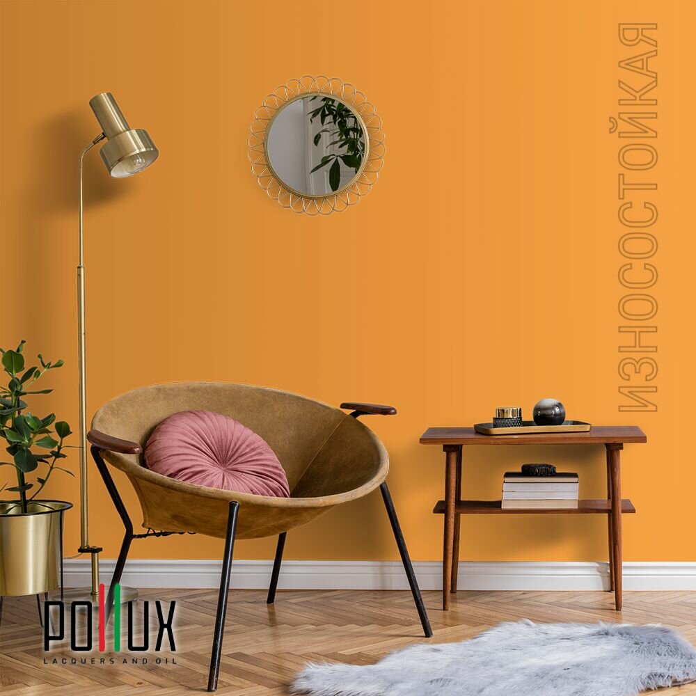 Краска моющаяся интерьерная для стен и потолков, Pollux INTERIOR без запаха, быстросохнущая, акриловая, матовое покрытие, цвет NCS S 0585-Y30R, 1л.