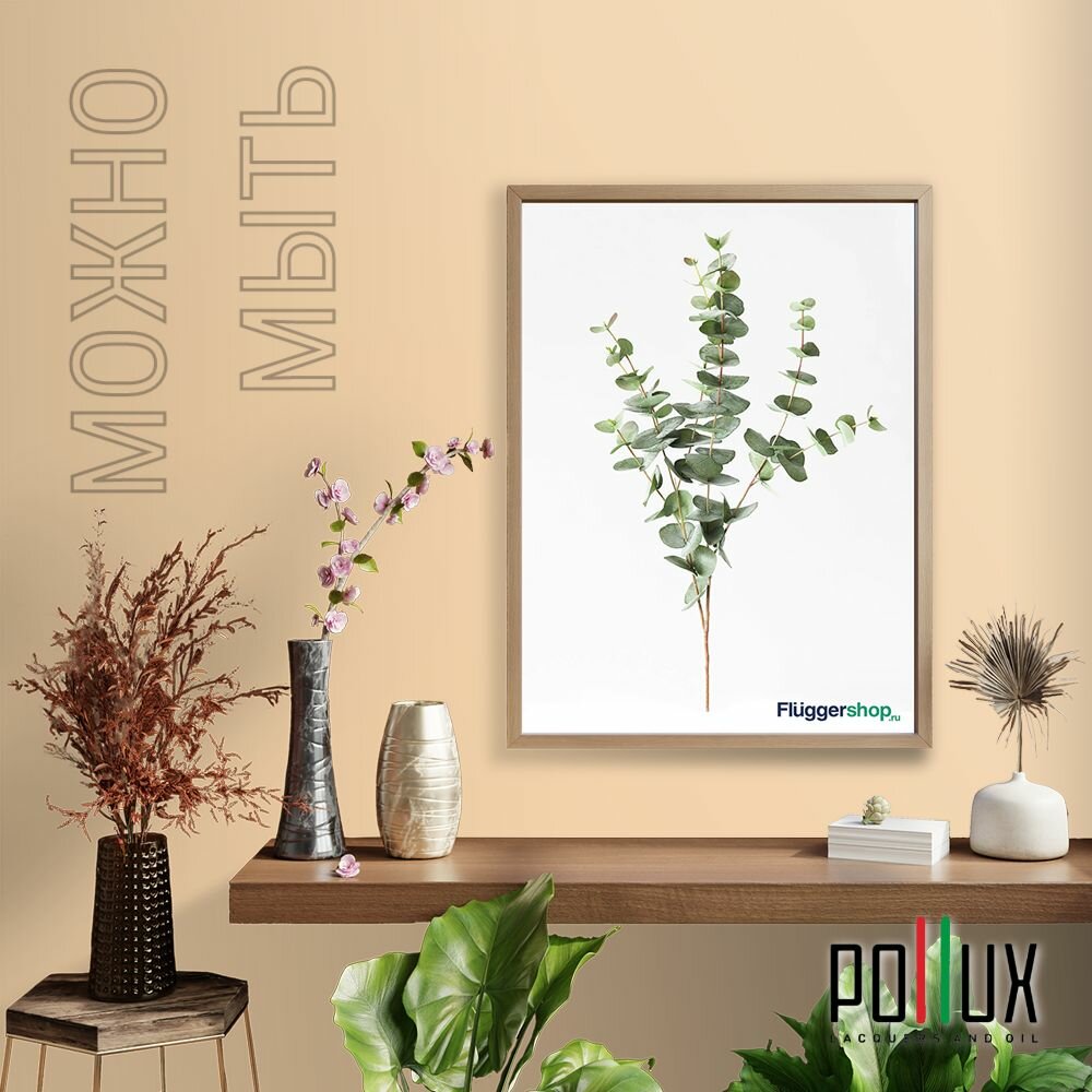 Краска моющаяся интерьерная для стен и потолков, Pollux INTERIOR без запаха, быстросохнущая, акриловая, матовое покрытие, цвет NCS S 3010-Y30R, 1л.