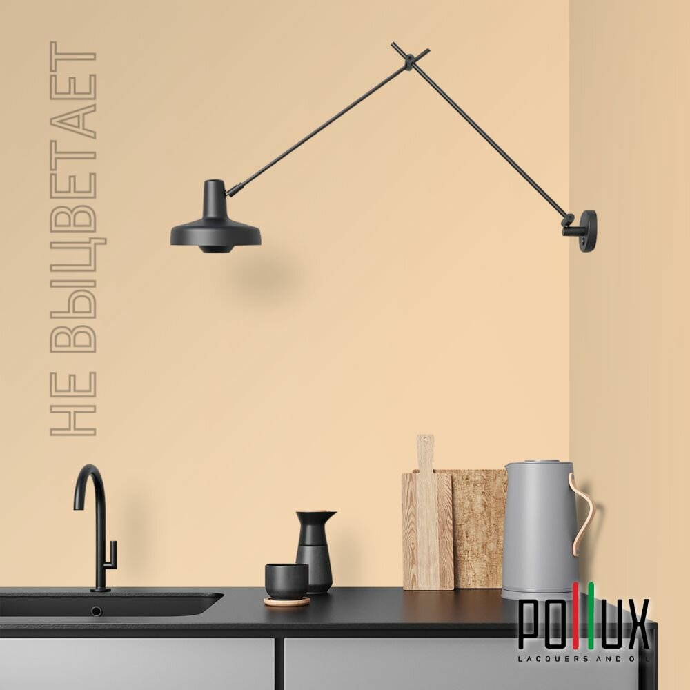 Краска моющаяся интерьерная для стен и потолков, Pollux INTERIOR без запаха, быстросохнущая, акриловая, матовое покрытие, цвет NCS S 1510-Y30R, 1л.