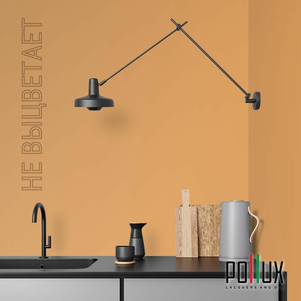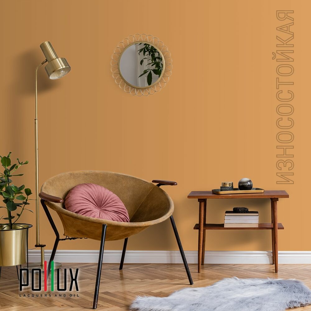 Краска моющаяся интерьерная для стен и потолков, Pollux INTERIOR без запаха, быстросохнущая, акриловая, матовое покрытие, цвет NCS S 0585-Y30R, 1л.