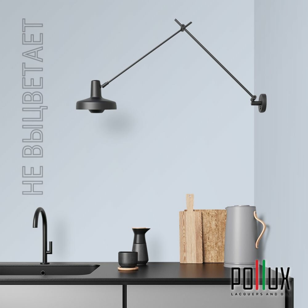 Краска моющаяся интерьерная для стен и потолков, Pollux INTERIOR без запаха, быстросохнущая, акриловая, матовое покрытие, цвет NCS S 7020-R80B, 1л.