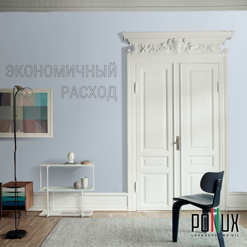 Краска моющаяся интерьерная для стен и потолков, Pollux INTERIOR без запаха, быстросохнущая, акриловая, матовое покрытие, цвет NCS S 5005-R80B, 1л.