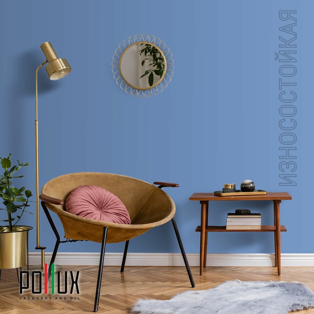 Краска моющаяся интерьерная для стен и потолков, Pollux INTERIOR без запаха, быстросохнущая, акриловая, матовое покрытие, цвет NCS S 4550-R80B, 1л.