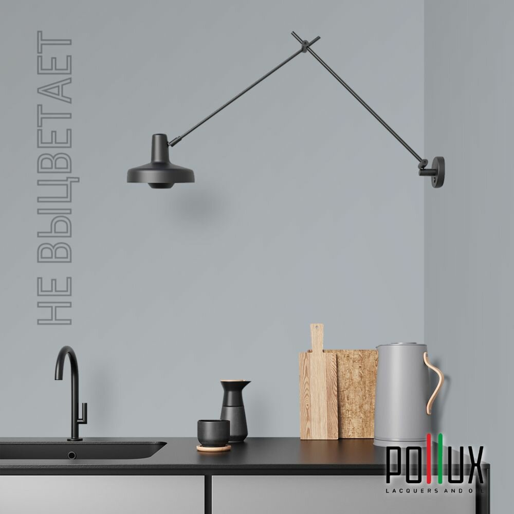 Краска моющаяся интерьерная для стен и потолков, Pollux INTERIOR без запаха, быстросохнущая, акриловая, матовое покрытие, цвет NCS S 7005-R80B, 1л.