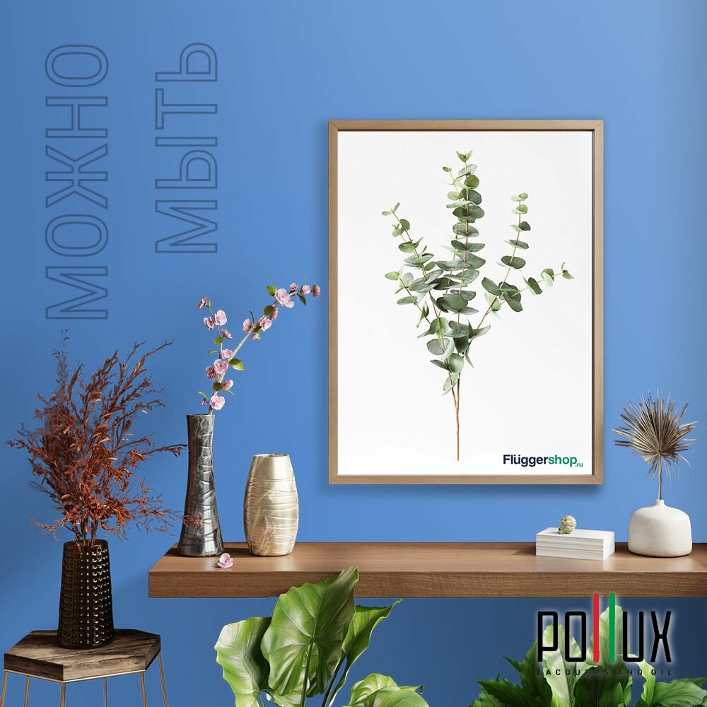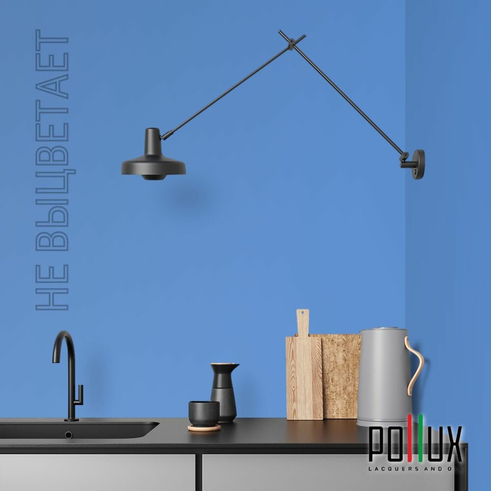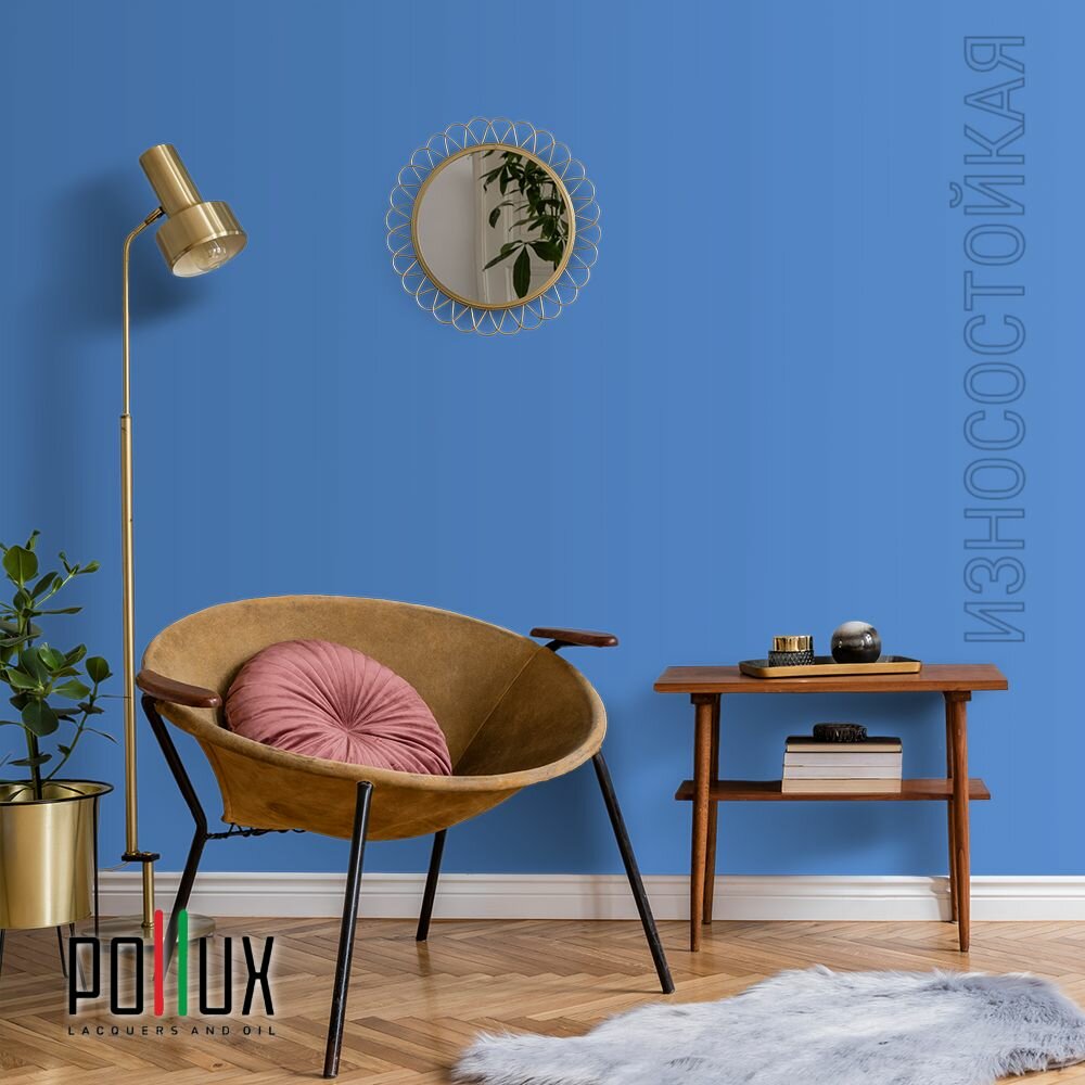 Краска моющаяся интерьерная для стен и потолков, Pollux INTERIOR без запаха, быстросохнущая, акриловая, матовое покрытие, цвет NCS S 4550-R80B, 1л.
