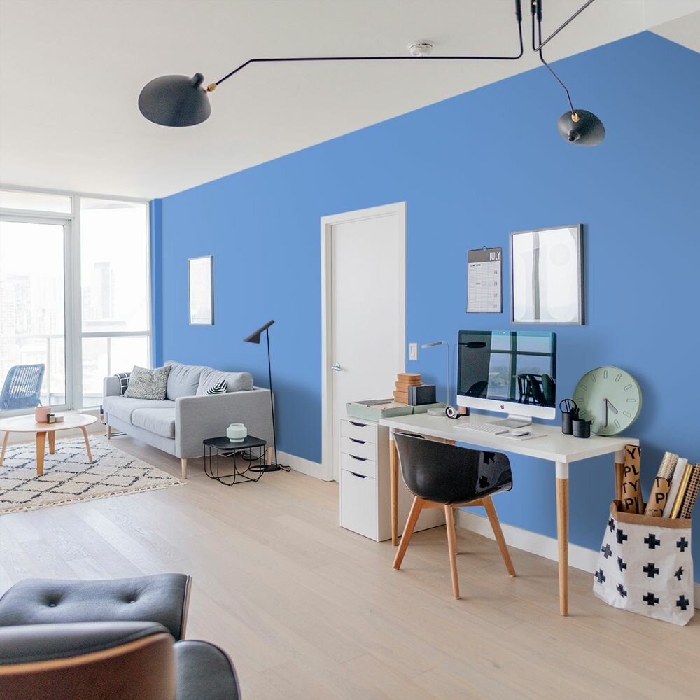 Краска моющаяся интерьерная для стен и потолков, Pollux INTERIOR без запаха, быстросохнущая, акриловая, матовое покрытие, цвет NCS S 4050-R80B, 1л.