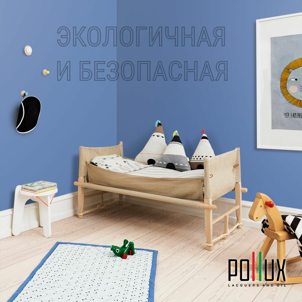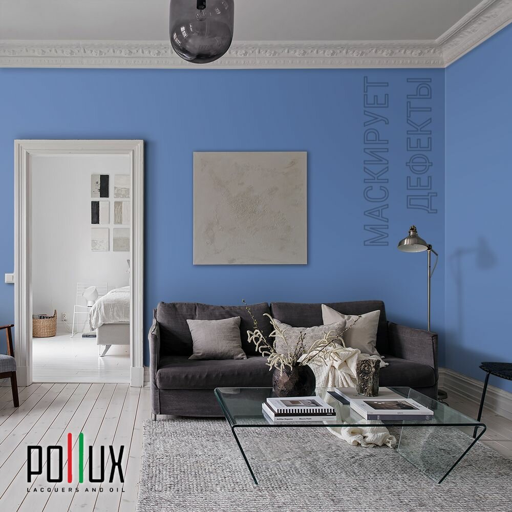 Краска моющаяся интерьерная для стен и потолков, Pollux INTERIOR без запаха, быстросохнущая, акриловая, матовое покрытие, цвет NCS S 2050-R80B, 1л.