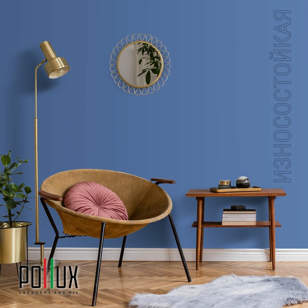 Краска моющаяся интерьерная для стен и потолков, Pollux INTERIOR без запаха, быстросохнущая, акриловая, матовое покрытие, цвет NCS S 3050-R80B, 1л.