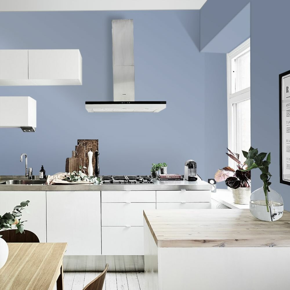 Краска моющаяся интерьерная для стен и потолков, Pollux INTERIOR без запаха, быстросохнущая, акриловая, матовое покрытие, цвет NCS S 4050-R80B, 1л.