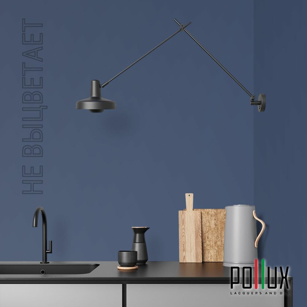 Краска моющаяся интерьерная для стен и потолков, Pollux INTERIOR без запаха, быстросохнущая, акриловая, матовое покрытие, цвет NCS S 3560-R80B, 1л.