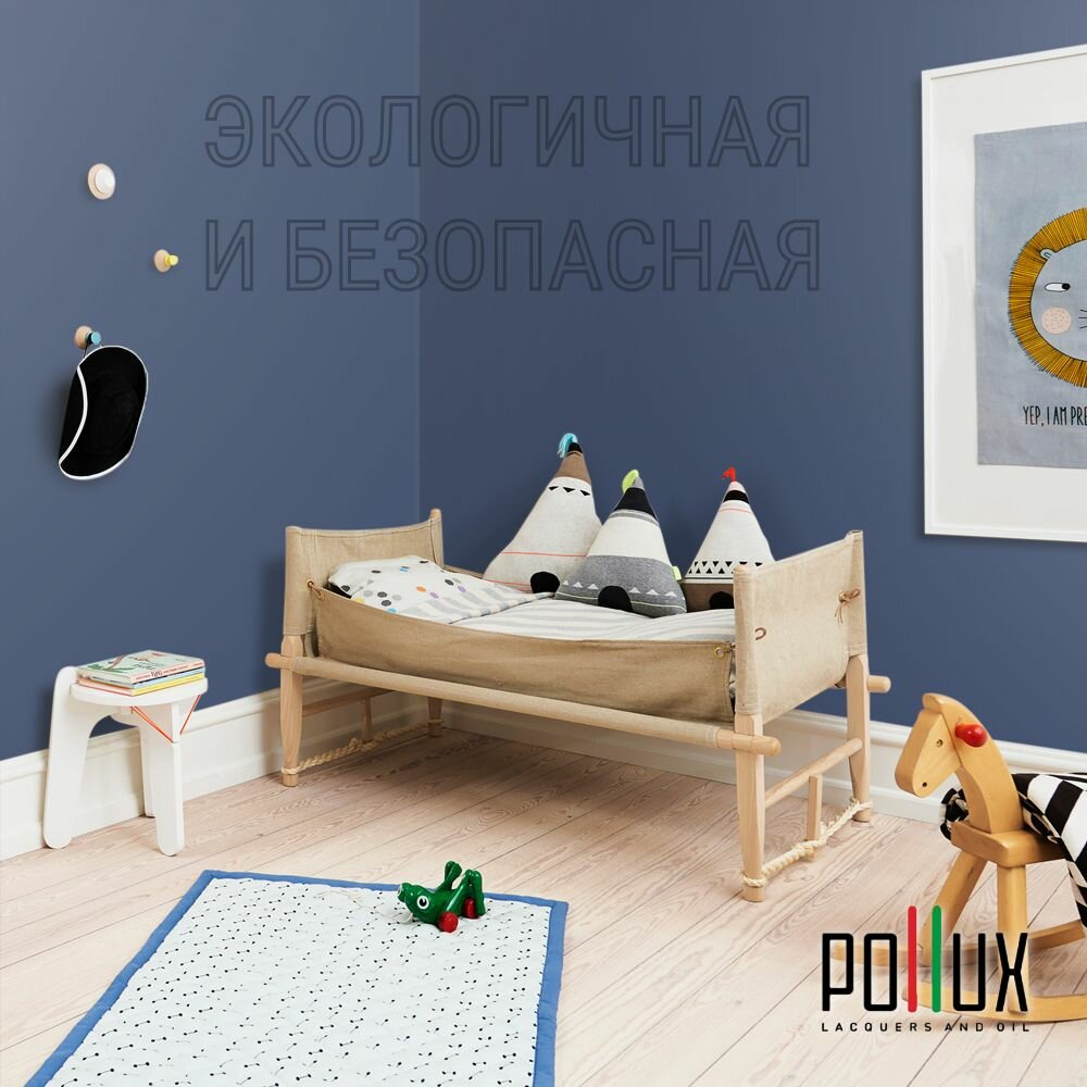 Краска моющаяся интерьерная для стен и потолков, Pollux INTERIOR без запаха, быстросохнущая, акриловая, матовое покрытие, цвет NCS S 4020-R80B, 1л.