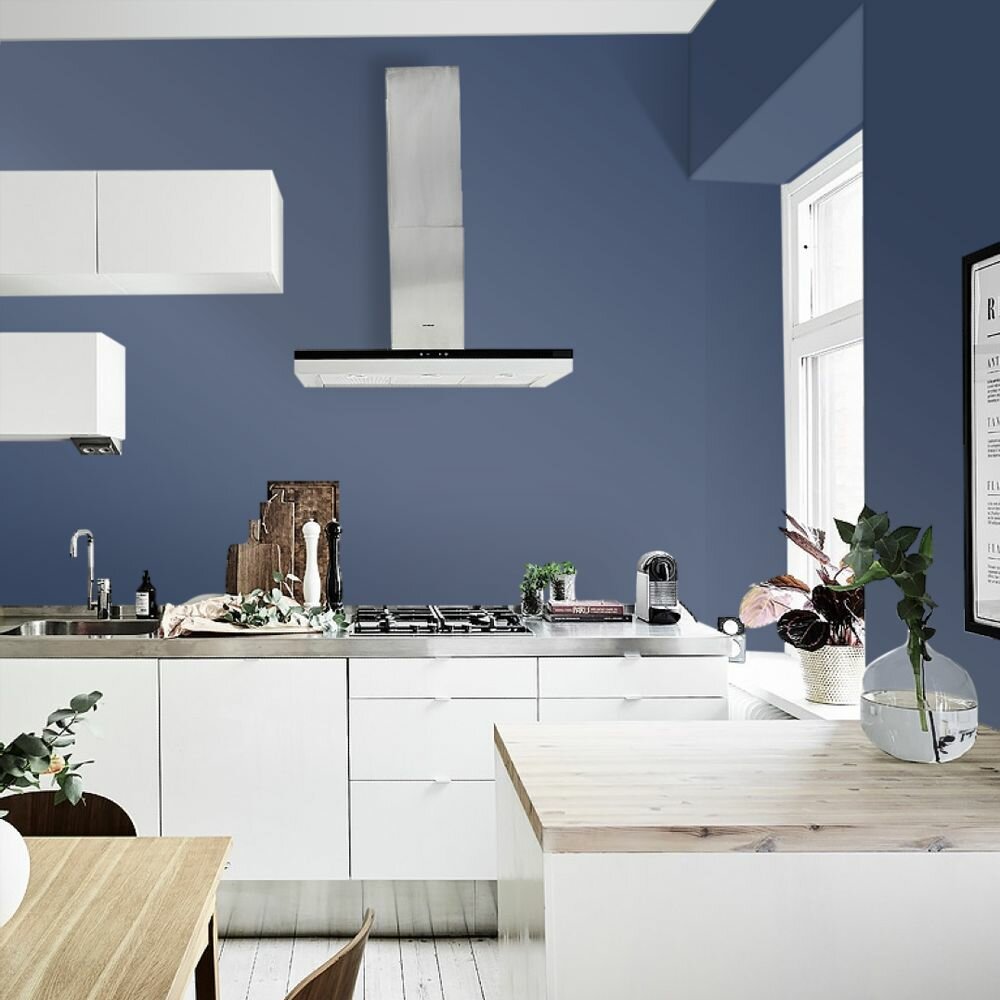 Краска моющаяся интерьерная для стен и потолков, Pollux INTERIOR без запаха, быстросохнущая, акриловая, матовое покрытие, цвет NCS S 4050-R80B, 1л.