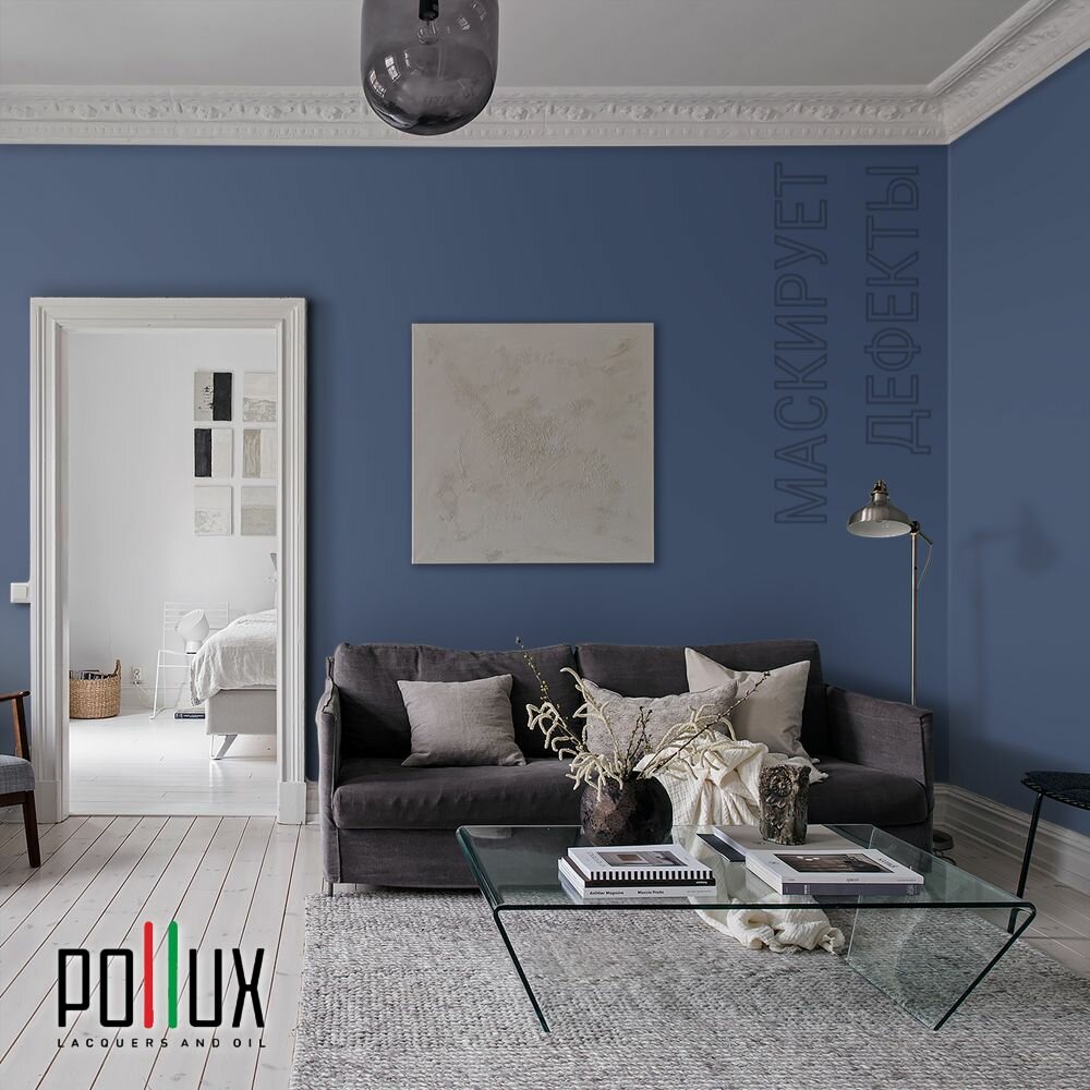 Краска моющаяся интерьерная для стен и потолков, Pollux INTERIOR без запаха, быстросохнущая, акриловая, матовое покрытие, цвет NCS S 3050-R80B, 1л.