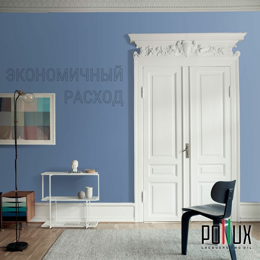 Краска моющаяся интерьерная для стен и потолков, Pollux INTERIOR без запаха, быстросохнущая, акриловая, матовое покрытие, цвет NCS S 4550-R80B, 1л.