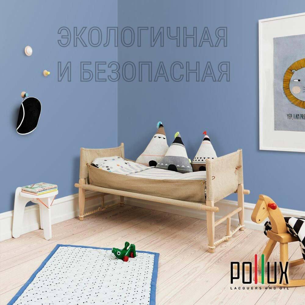 Краска моющаяся интерьерная для стен и потолков, Pollux INTERIOR без запаха, быстросохнущая, акриловая, матовое покрытие, цвет NCS S 4020-R80B, 1л.