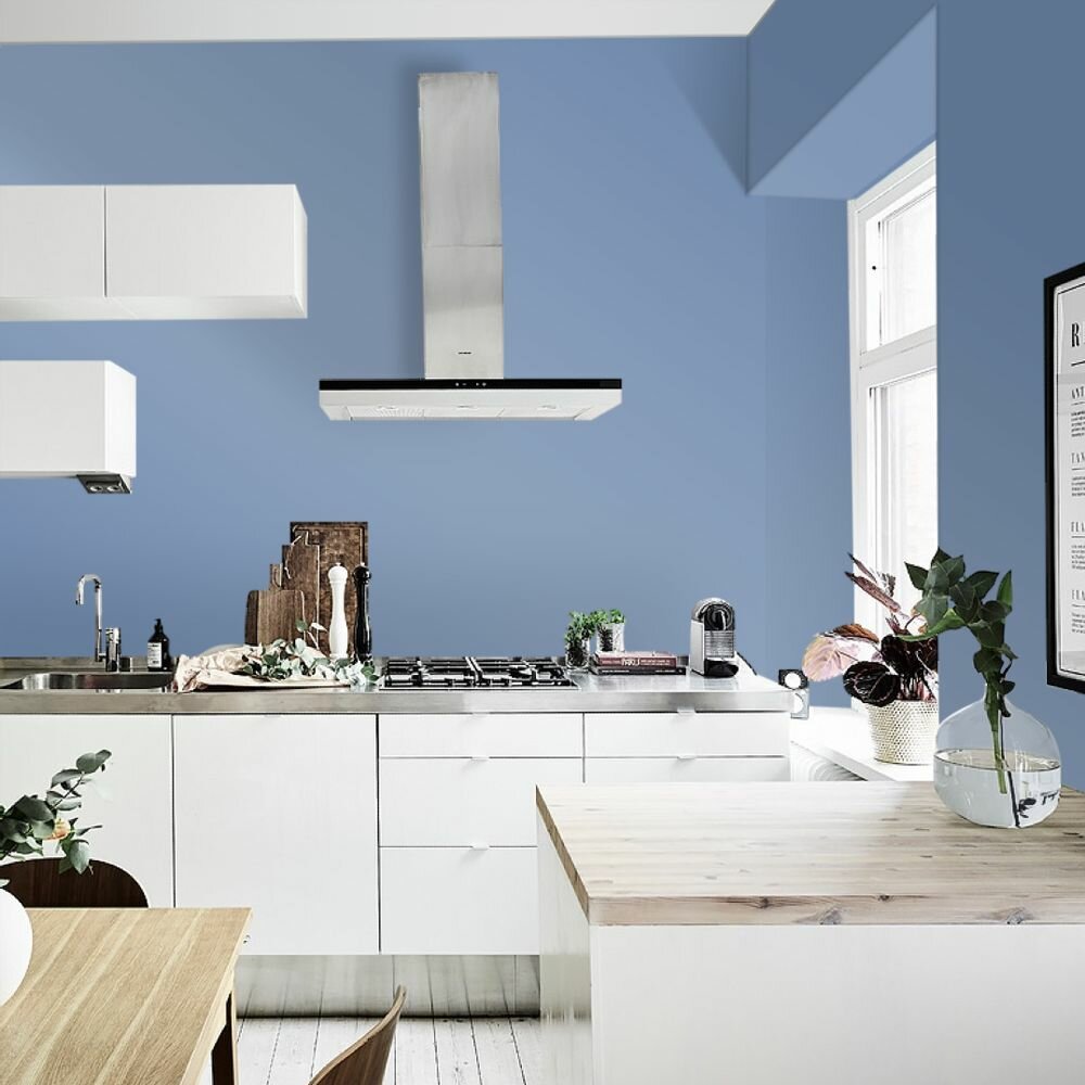 Краска моющаяся интерьерная для стен и потолков, Pollux INTERIOR без запаха, быстросохнущая, акриловая, матовое покрытие, цвет NCS S 4050-R80B, 1л.
