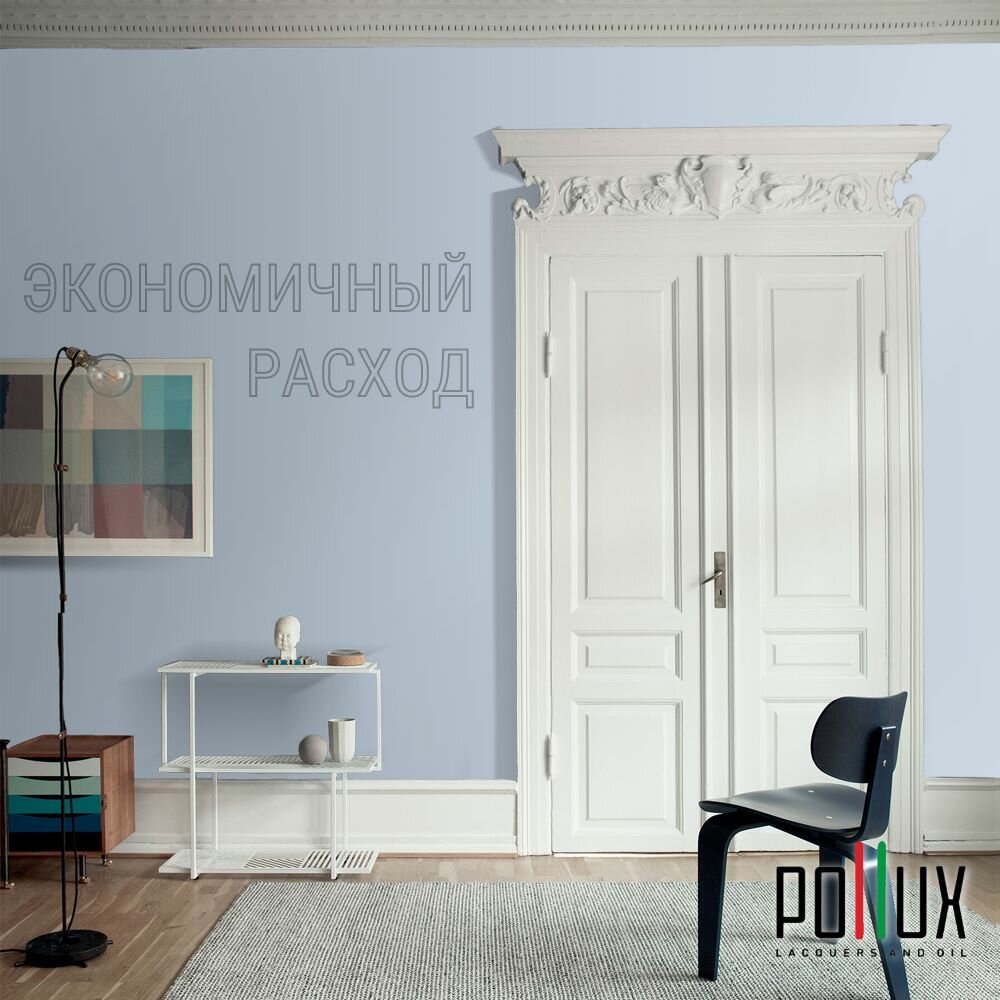 Краска моющаяся интерьерная для стен и потолков, Pollux INTERIOR без запаха, быстросохнущая, акриловая, матовое покрытие, цвет NCS S 2010-R80B, 1л.