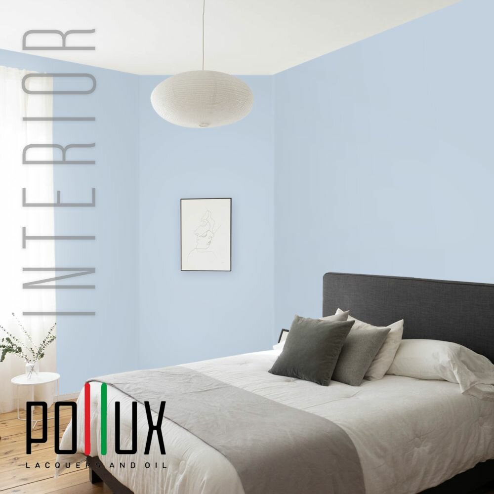 Краска моющаяся интерьерная для стен и потолков, Pollux INTERIOR без запаха, быстросохнущая, акриловая, матовое покрытие, цвет NCS S 2050-R80B, 1л.