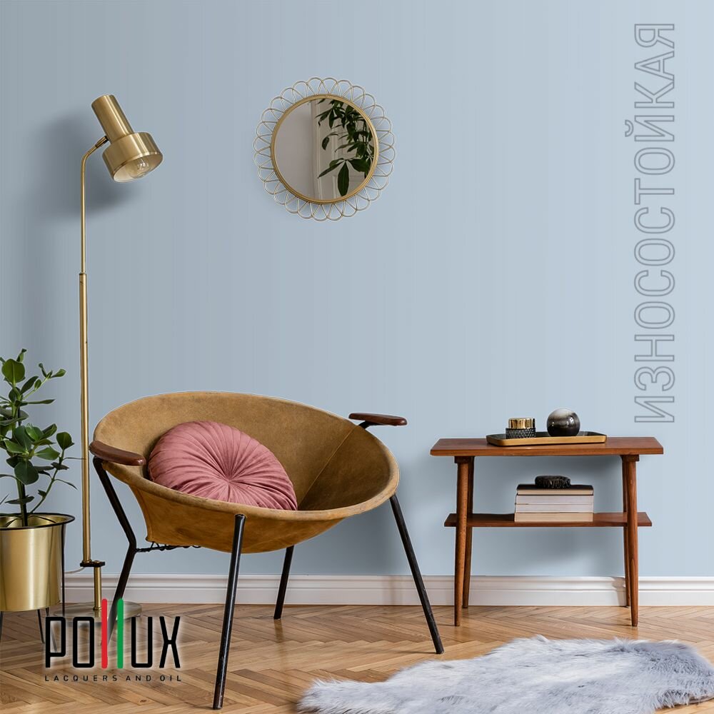 Краска моющаяся интерьерная для стен и потолков, Pollux INTERIOR без запаха, быстросохнущая, акриловая, матовое покрытие, цвет NCS S 4030-R80B, 1л.