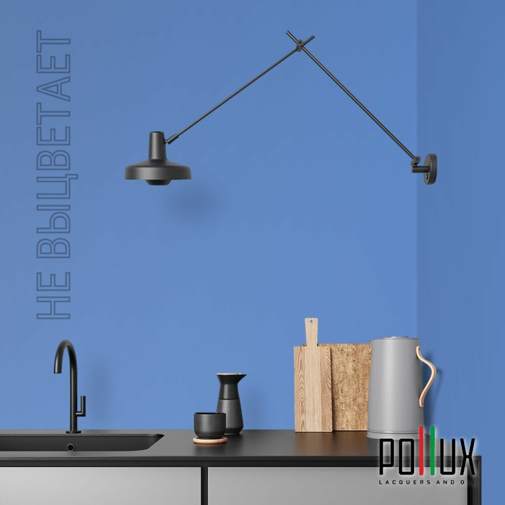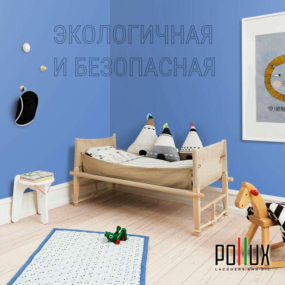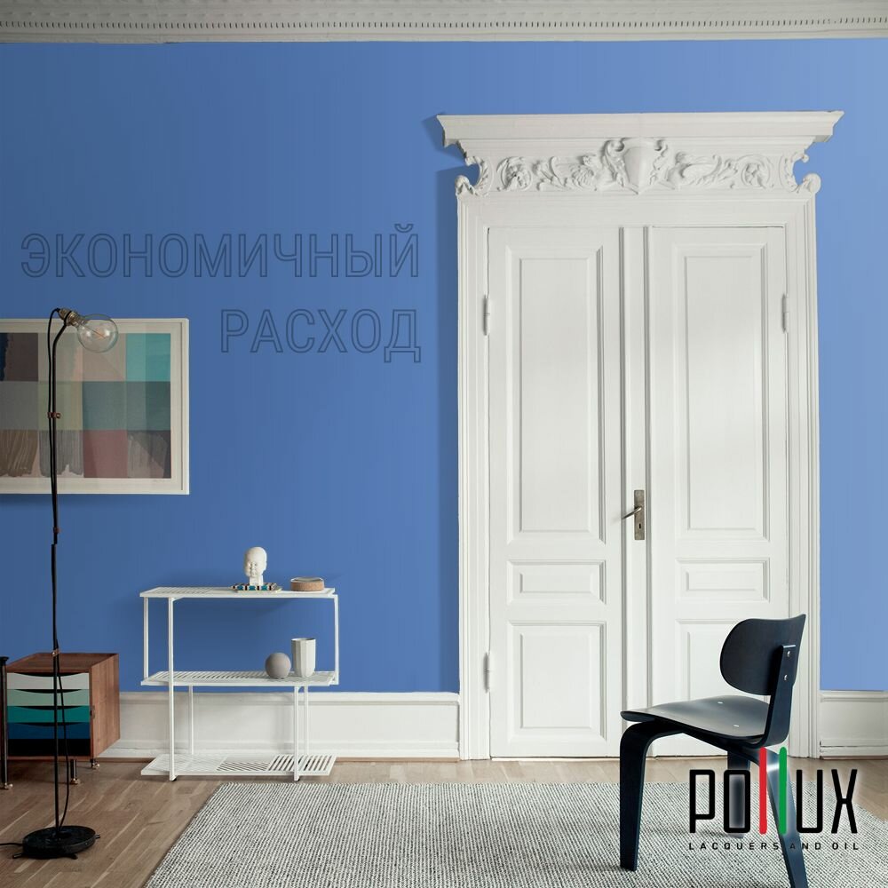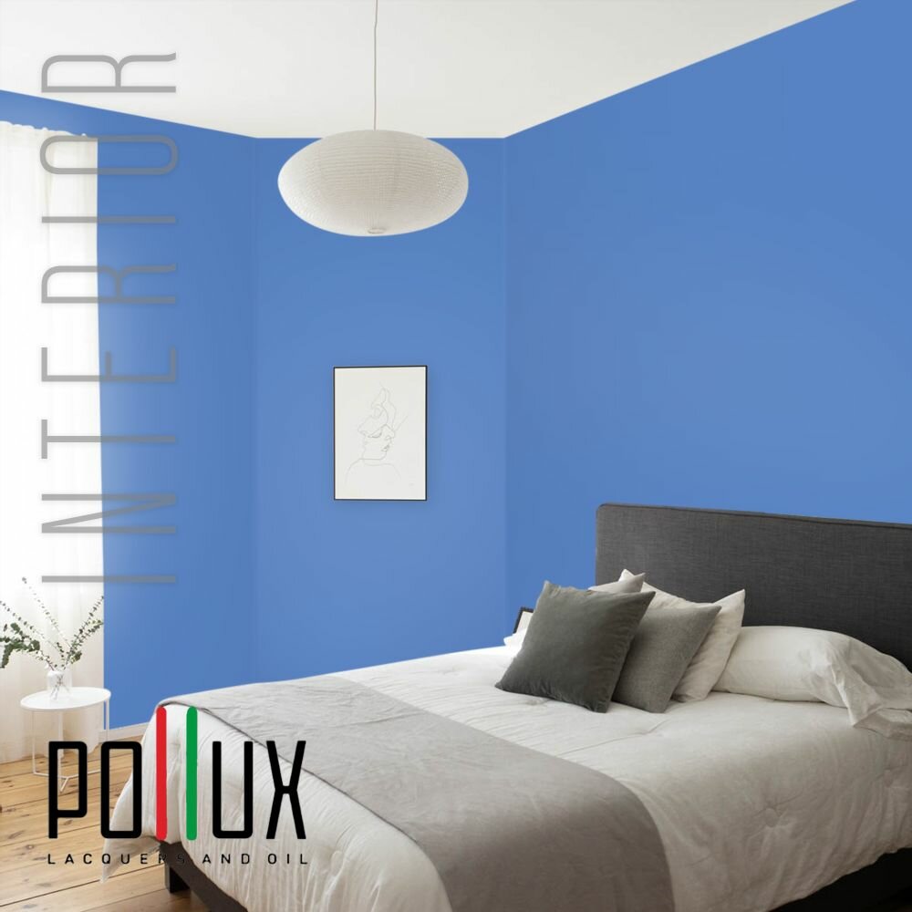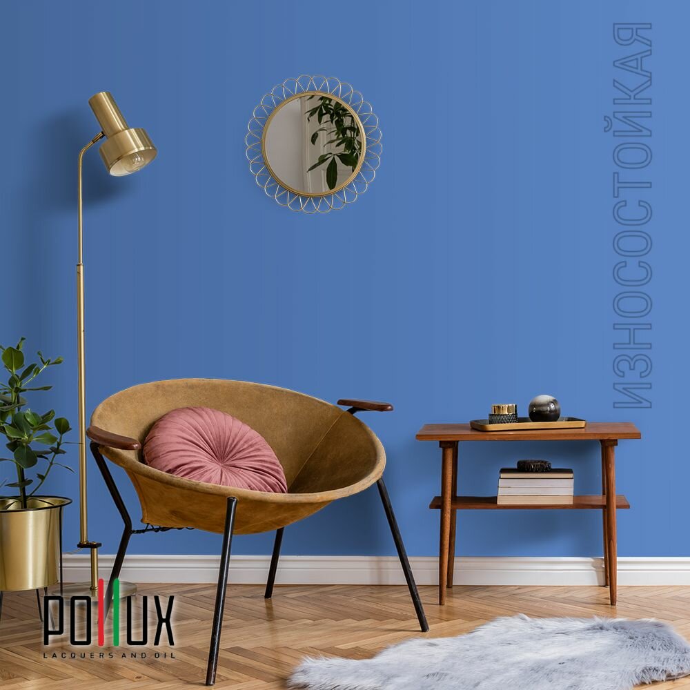 Краска моющаяся интерьерная для стен и потолков, Pollux INTERIOR без запаха, быстросохнущая, акриловая, матовое покрытие, цвет NCS S 4550-R80B, 1л.