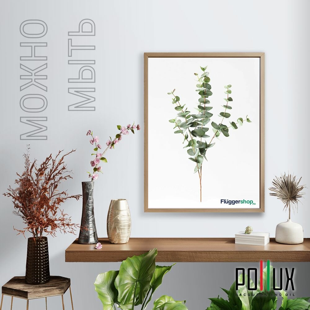 Краска моющаяся интерьерная для стен и потолков, Pollux INTERIOR без запаха, быстросохнущая, акриловая, матовое покрытие, цвет NCS S 6030-R80B, 1л.