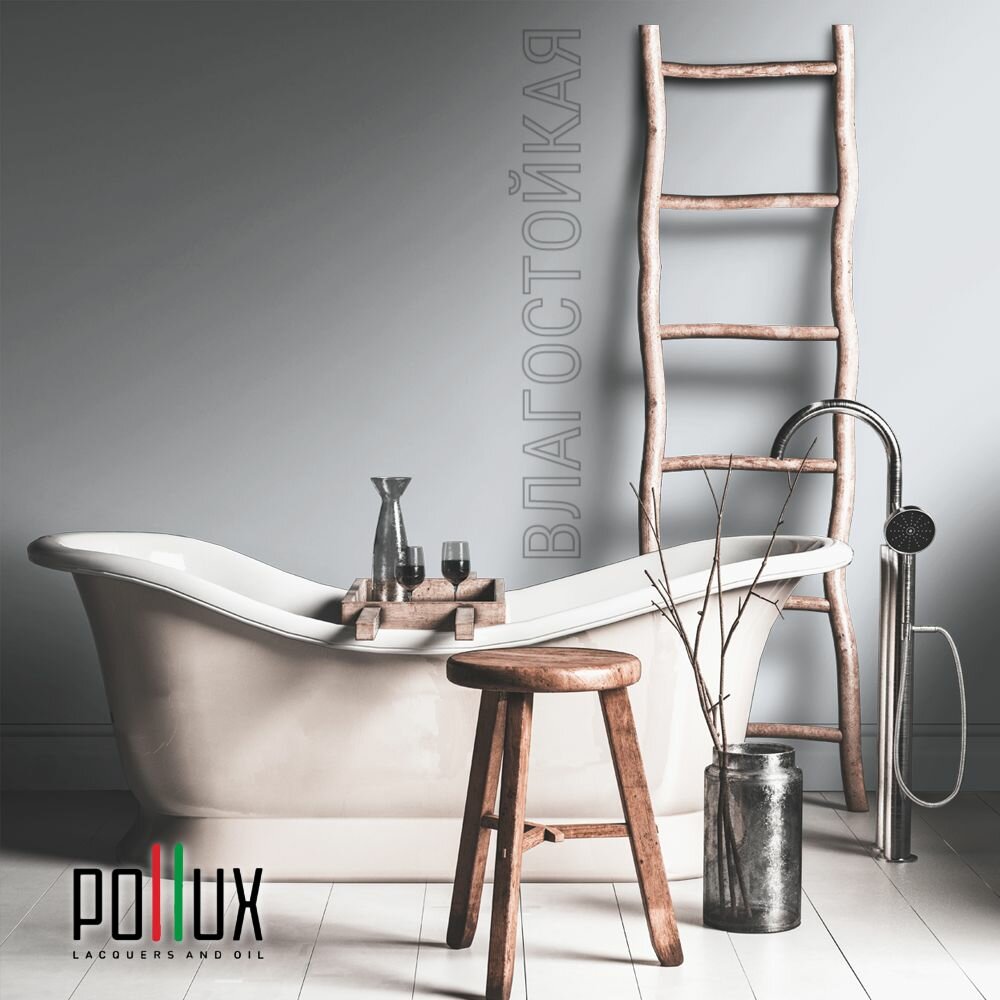 Краска моющаяся интерьерная для стен и потолков, Pollux INTERIOR без запаха, быстросохнущая, акриловая, матовое покрытие, цвет NCS S 7005-R80B, 1л.