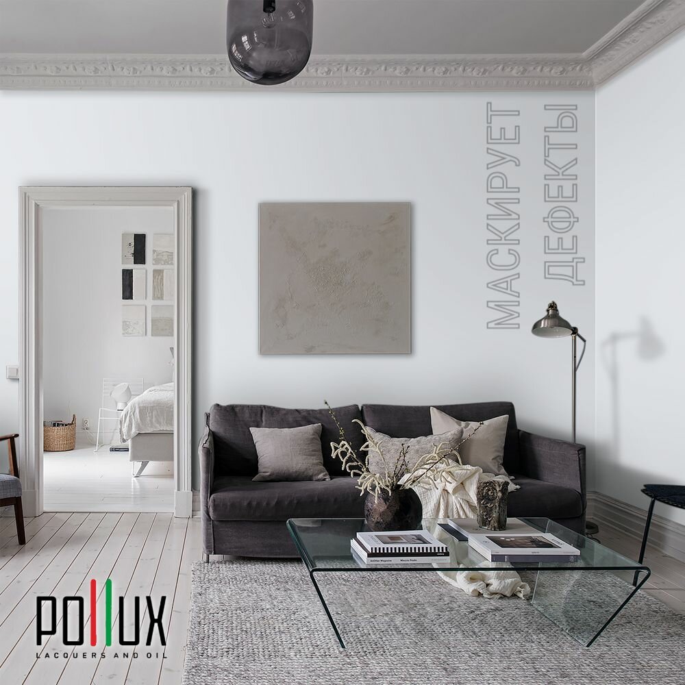 Краска моющаяся интерьерная для стен и потолков, Pollux INTERIOR без запаха, быстросохнущая, акриловая, матовое покрытие, цвет NCS S 0603-R80B, 1л.