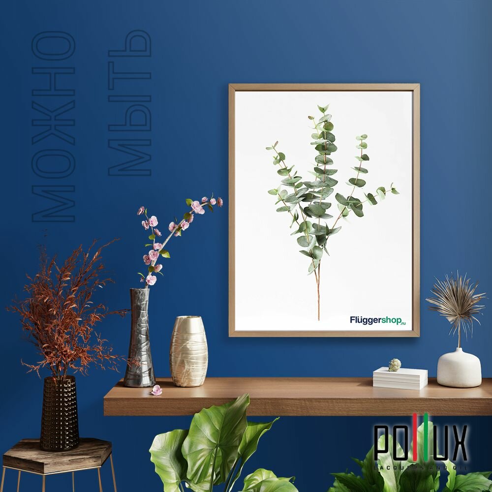 Краска моющаяся интерьерная для стен и потолков, Pollux INTERIOR без запаха, быстросохнущая, акриловая, матовое покрытие, цвет NCS S 3050-R80B, 1л.