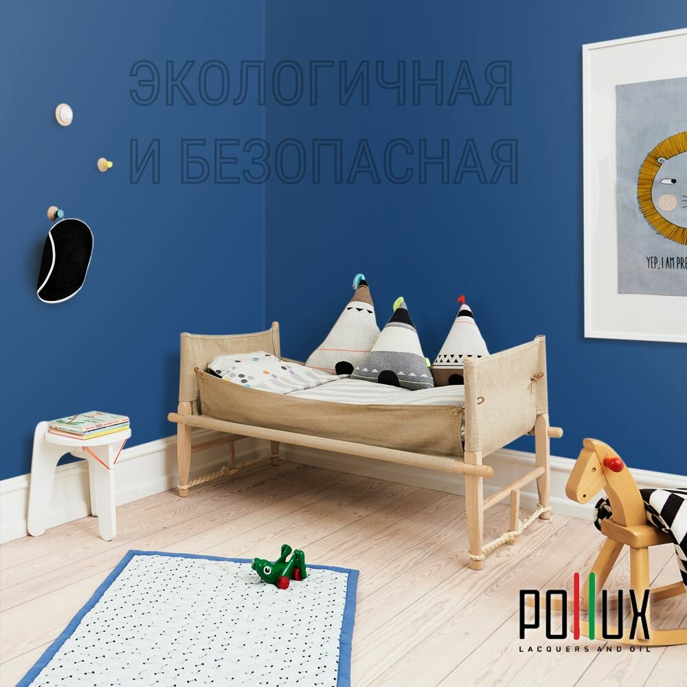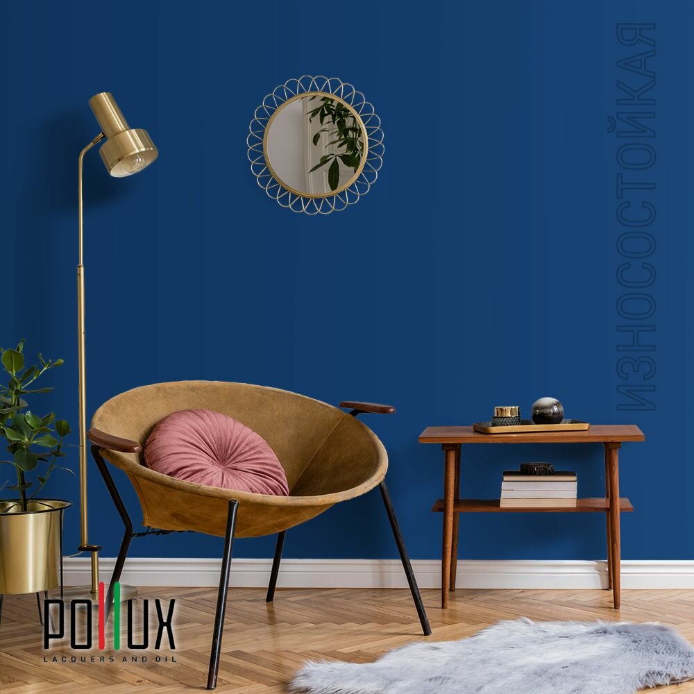 Краска моющаяся интерьерная для стен и потолков, Pollux INTERIOR без запаха, быстросохнущая, акриловая, матовое покрытие, цвет NCS S 3005-R80B, 1л.