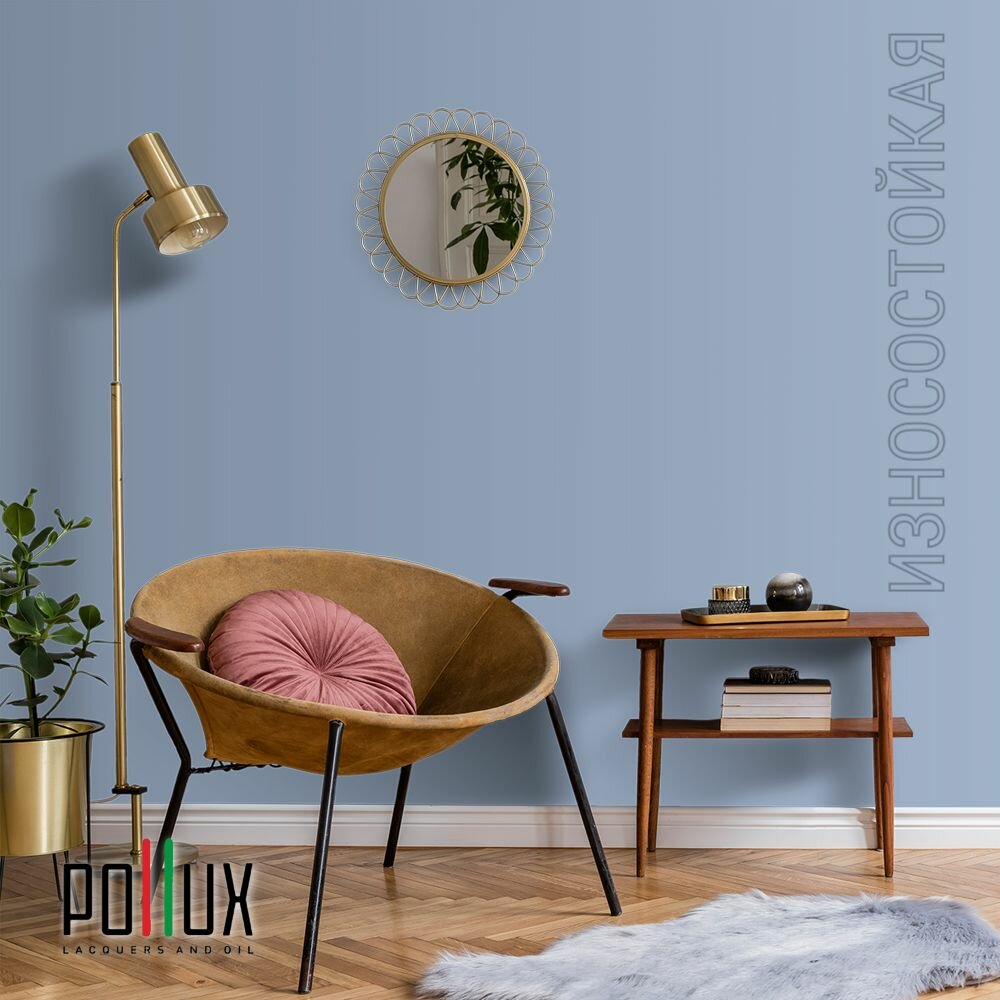 Краска моющаяся интерьерная для стен и потолков, Pollux INTERIOR без запаха, быстросохнущая, акриловая, матовое покрытие, цвет NCS S 4030-R80B, 1л.