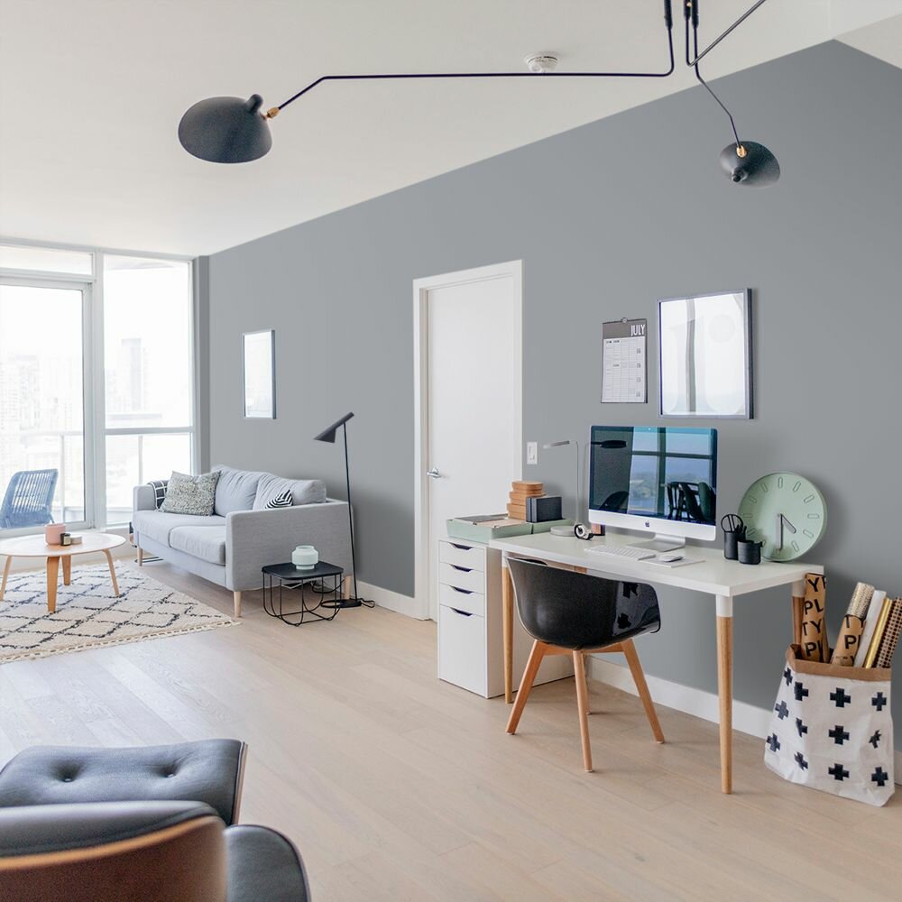 Краска моющаяся интерьерная для стен и потолков, Pollux INTERIOR без запаха, быстросохнущая, акриловая, матовое покрытие, цвет NCS S 7005-R80B, 1л.