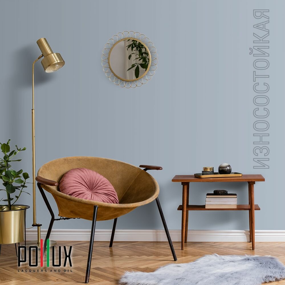 Краска моющаяся интерьерная для стен и потолков, Pollux INTERIOR без запаха, быстросохнущая, акриловая, матовое покрытие, цвет NCS S 4030-R80B, 1л.