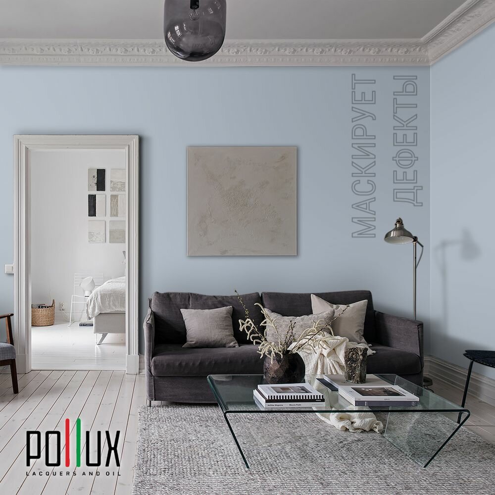 Краска моющаяся интерьерная для стен и потолков, Pollux INTERIOR без запаха, быстросохнущая, акриловая, матовое покрытие, цвет NCS S 2050-R80B, 1л.