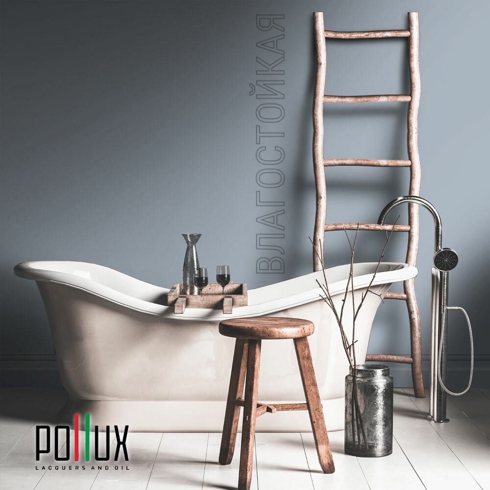 Краска моющаяся интерьерная для стен и потолков, Pollux INTERIOR без запаха, быстросохнущая, акриловая, матовое покрытие, цвет NCS S 1015-R80B, 1л.